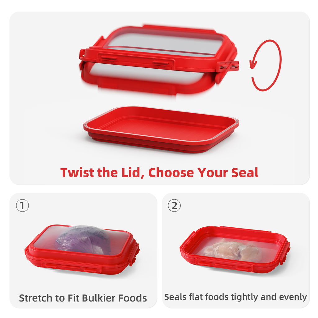 - 2️⃣ Fresh-Keeping Silicone Lid: 🧊 Flexible silicone film on one side keeps your food fresh longer, helps prevent odors from spreading, and makes it easy to see contents inside.