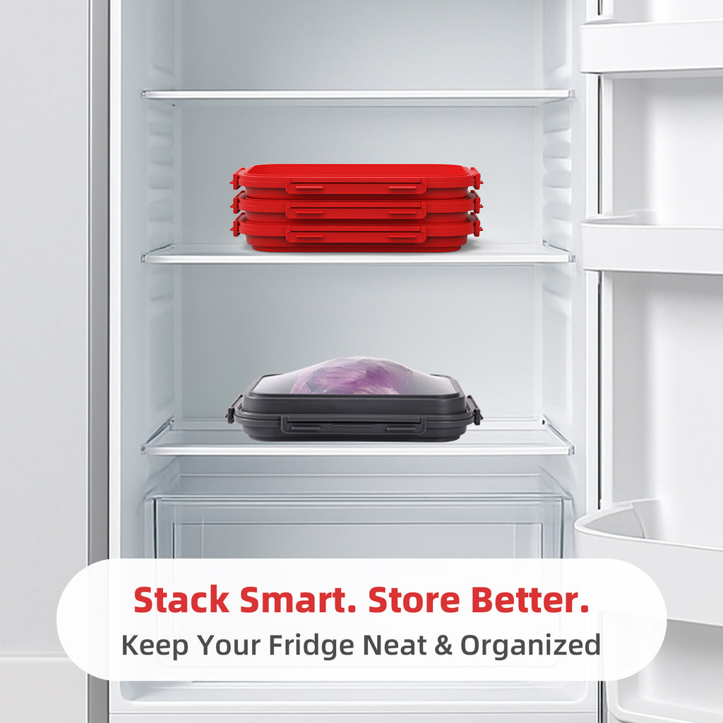 - 4️⃣ Nearly Stackable & Space-Saving: 📦 Clever design allows two boxes to nest or stack neatly, saving fridge space and making storage more organized.