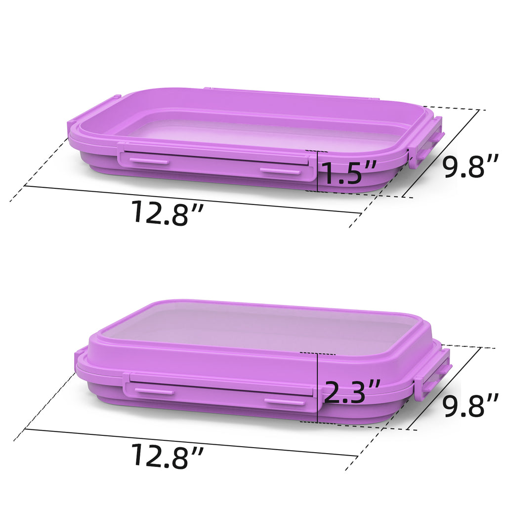 2 Pack Silicone Food Fresh-Keeping Storage Containers with Lid, Dual-Shape Design, BPA-Free, Leakproof Lock Clips, Versatile Fridge Storage Containers, Space Saving & Expandable