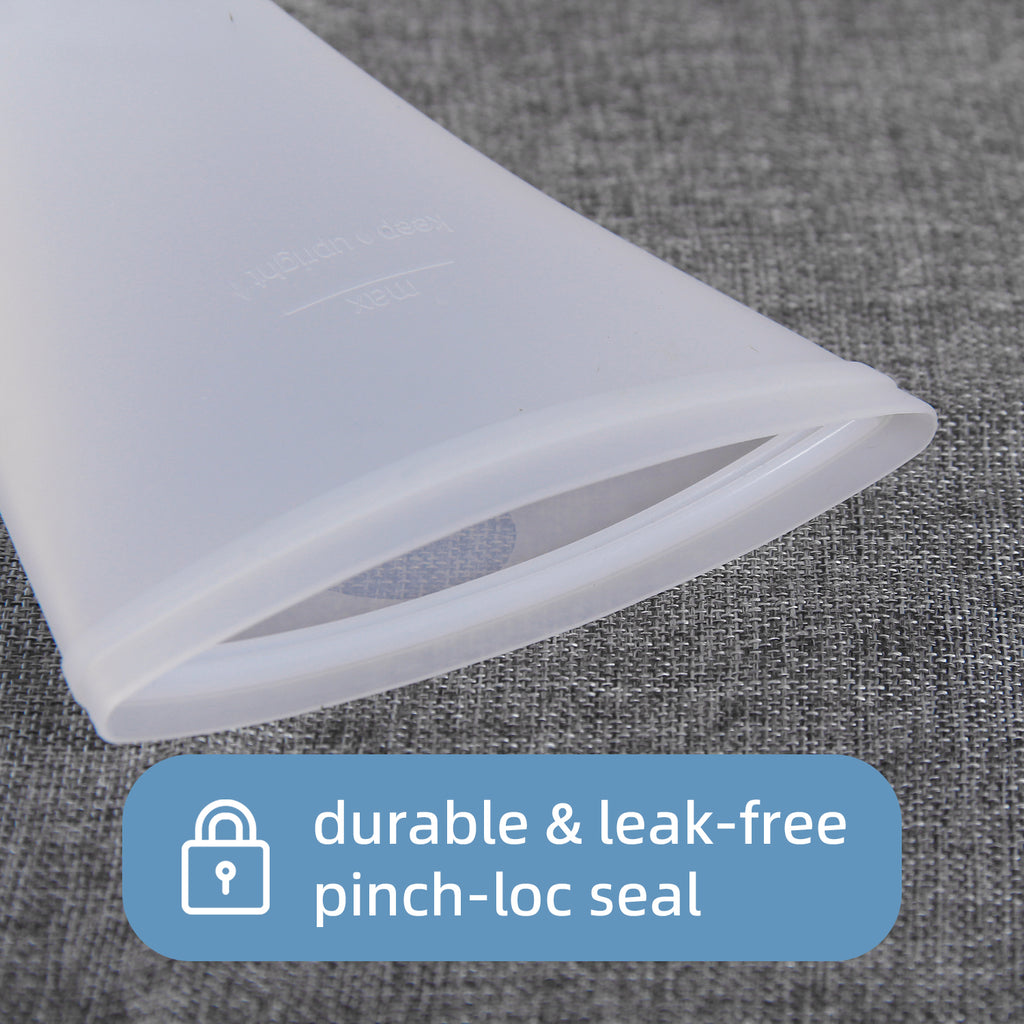 - LEAK PROOF WITH GENTLE HANDLING: Our reusable silicone bags feature a reliable leak proof zip seal. For best results, avoid overfilling or applying excessive pressure.