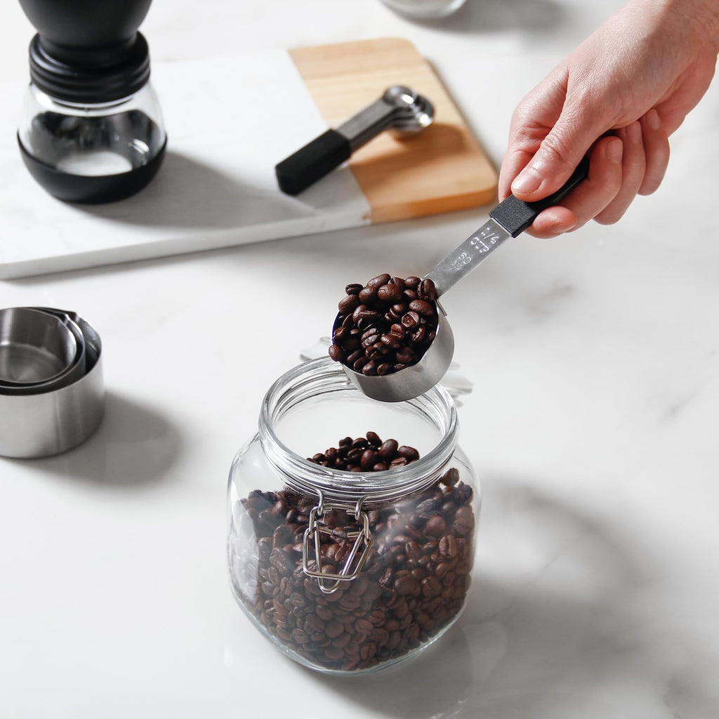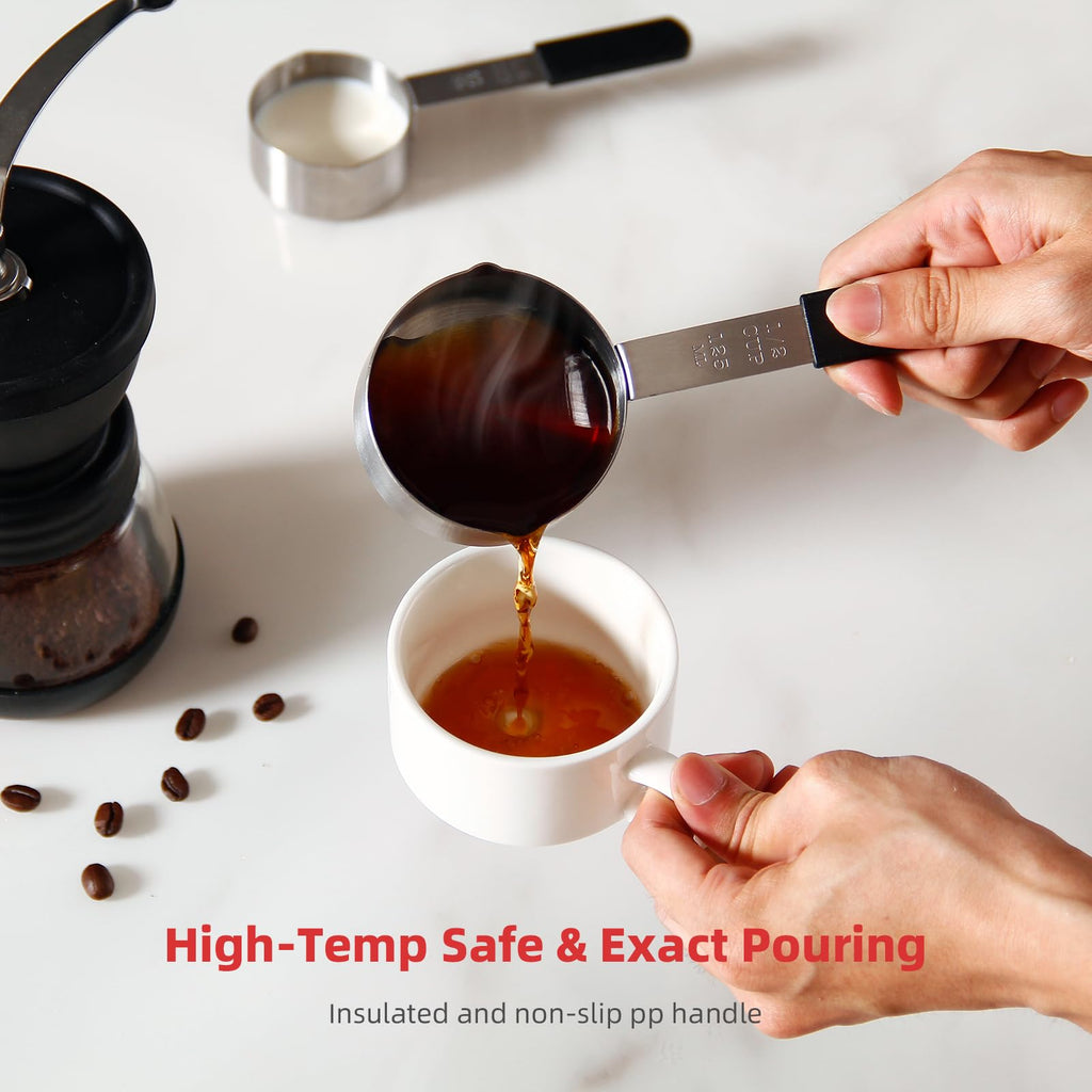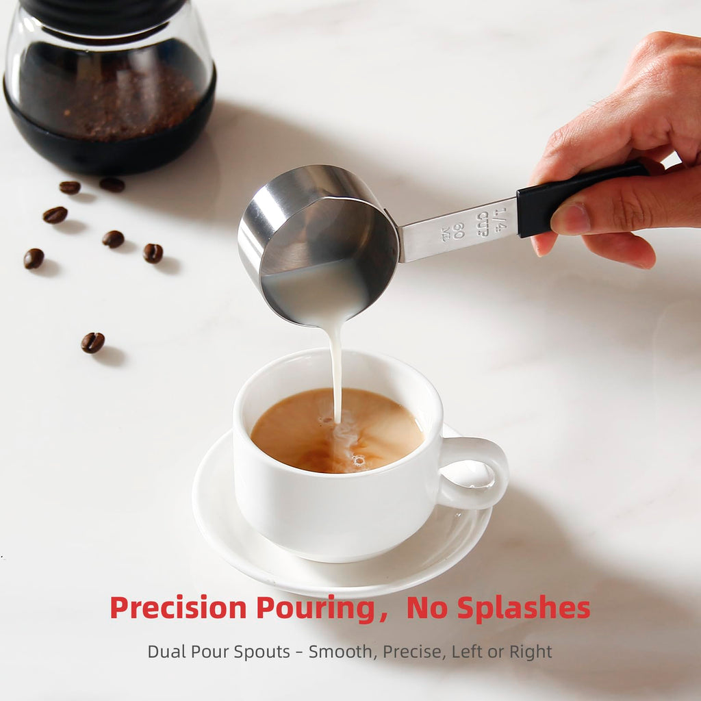- [Multi-Size Precision] 1 Cup, 1/2Cup, 1/3 Cup, 1/4 Cup, 1 Tbsp, 1 Tsp, 1/2 Tsp, and 1/4 Tsp—full-scale coverage for baking, cooking, sauces, and coffee! Perfect for recipes requiring accurate ratios, from family meals to gourmet desserts.